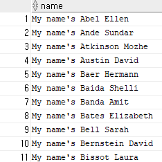 SELECT 'My name''s '||last_name||' '||first_name "name"